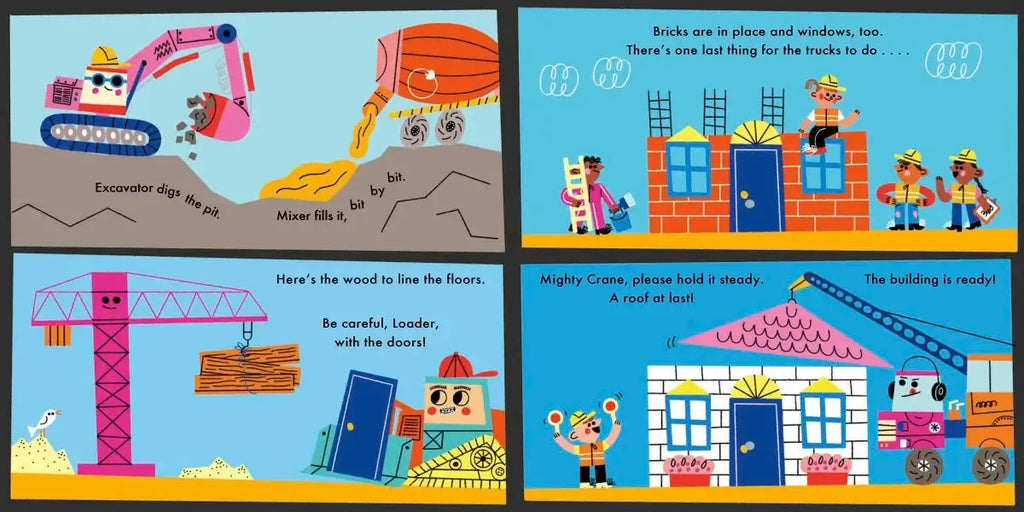 This bright, bold, energetic book follows a group of trucks as they begin their day and carry out their specific jobs. Perfect for young fans of construction vehicles!