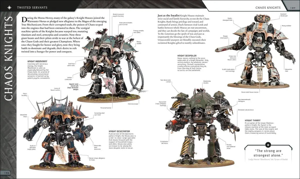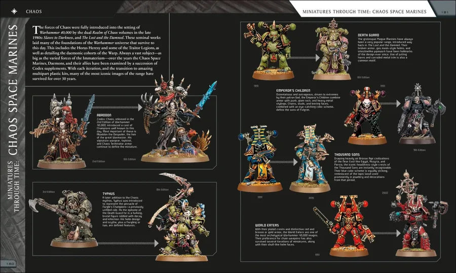 - Lavishly illustrated with hundreds of beautifully shot photographs of Warhammer 40,000 miniatures that showcase fine details and intricate designs across each faction, from the mighty Space Marines to the ravenous Tyranids, foul Chaos Daemons, deathless Necrons – and more.
