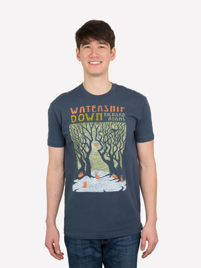 The adventures of Hazel and Fiver came about from a story Adams told his two daughters on a long car ride to Stratford-upon-Avon. Book cover illustration by designer Melanie Amaral for Watership Down.