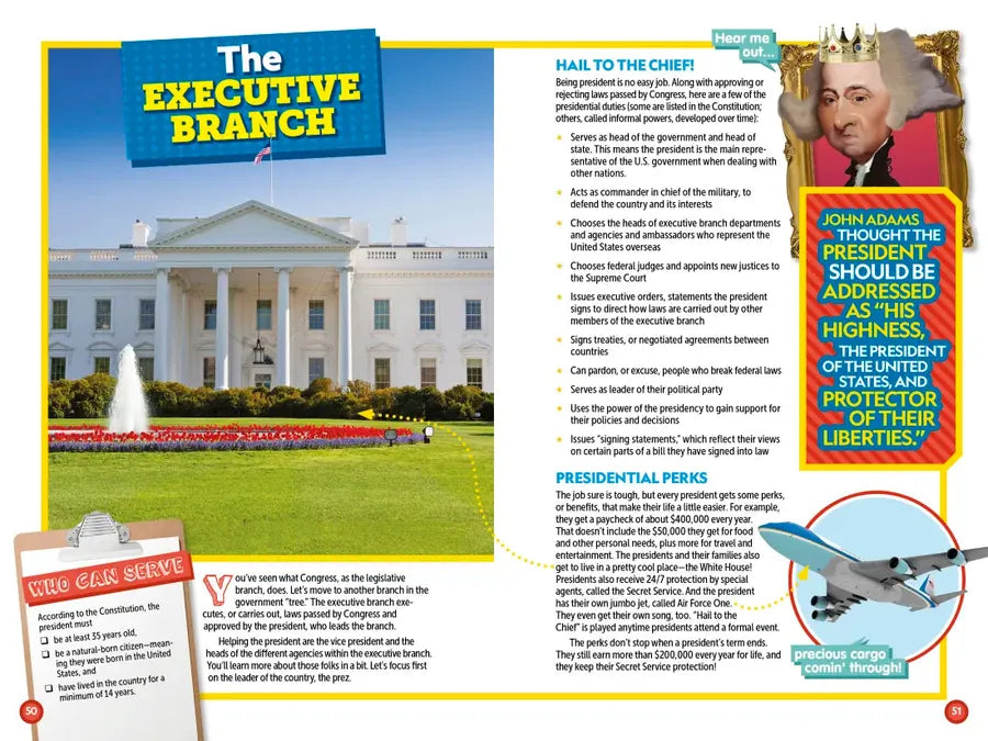 After reading this book, kids will walk away with a wealth of practical knowledge about our government, including the roles of each branch and how things get done. From the Senate to the Supreme Court and everything in between, readers will learn if a vote in Washington, D.C., really “counts,” how the two-party system got started, how many representatives each state has and why, and more. They’ll also be wowed by a ton of weird but true information, like funny laws in some states—in one, it’s illegal to kill Bigfoot!—how members of Congress ride their own mini-subways under the Capitol, and the surprising secrets of the dollar bill!