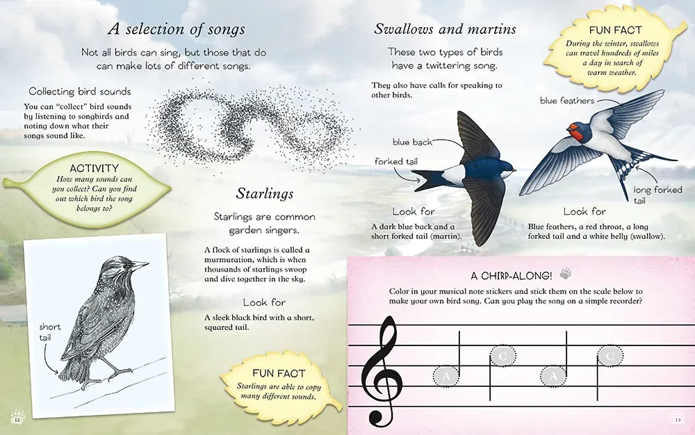 Packed with information, activities, and stickers, this guide for budding birders offers a wealth of facts about ducks, owls, eagles, and many other birds. Included are tips for planning an adventure, bird-spotting instructions, and other high-flying activities. Whether readers are bird-watching from their window or venturing out on a full-fledged expedition, there’s something here for all aspiring ornithologists.