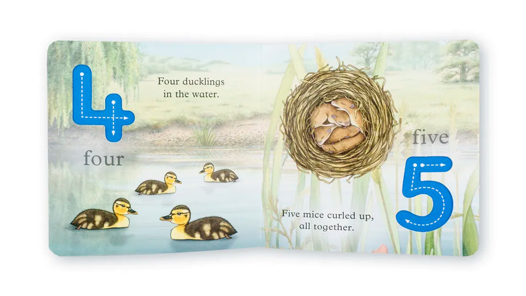 One dog, sniffing the floor ... turn the page to discover more! Use your finger to trace each number shape and learn all about counting on this first numbers adventure. With easy to follow pages featuring animals and plants from the best-loved Bear Hunt film, learning to count has never been more fun!