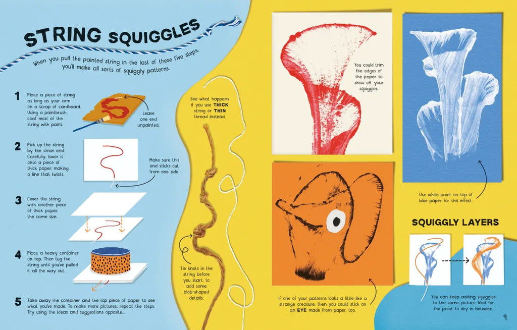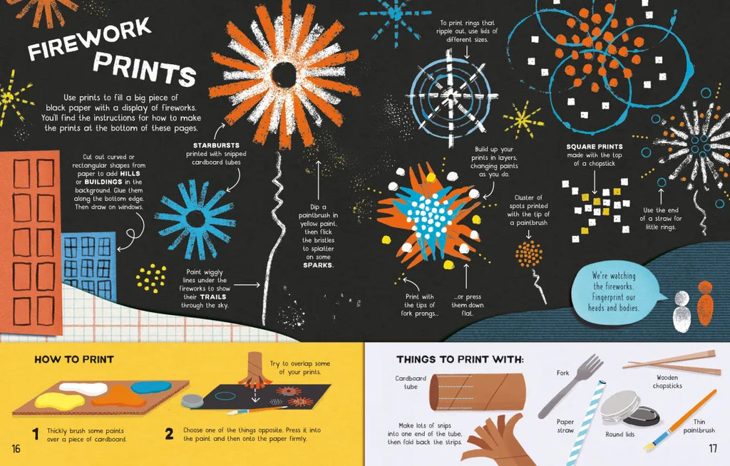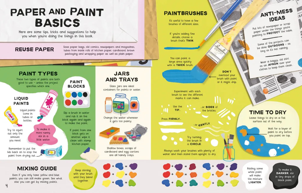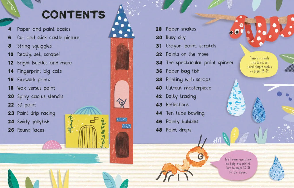 Discover the trick for making dot painting pictures, decorate paper leopards, tigers and lions with fingerprints and scrape paint with scraps of cardboard to create patterns that shimmer. Print a display of fireworks, create your own scratch art and mix 3D paint that dries solid and keeps its shape. And if you blow through a paper straw, you'll see drops of paint turn into swirly jellyfish.