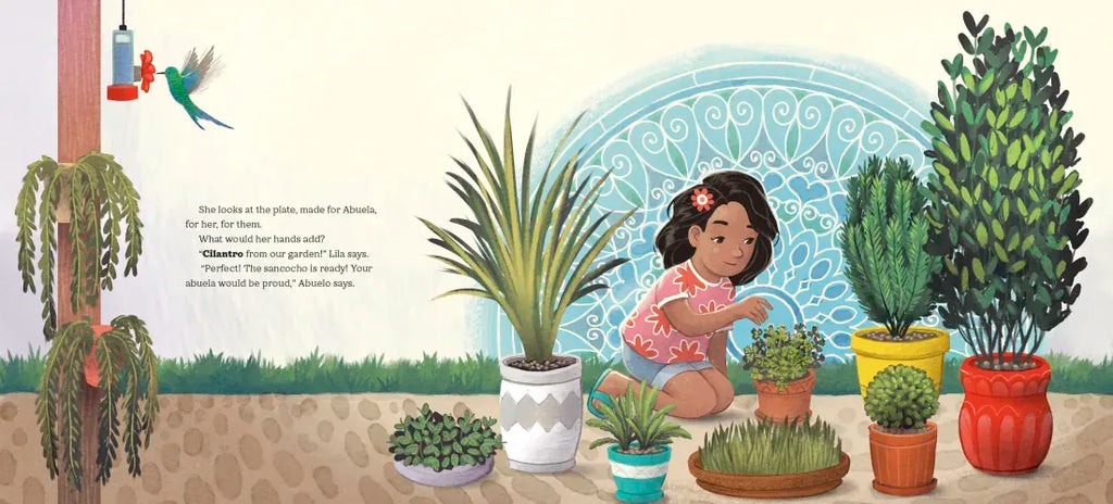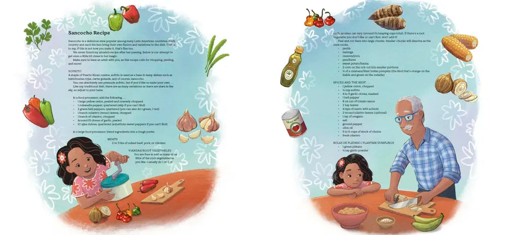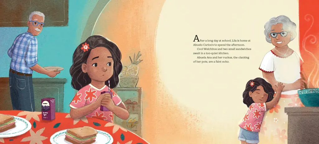 Lila and her Abuelo Carlos miss Abuela Ana. Without the sound of her laughter, the rhythm of her dancing, or the aromas of her cooking, home just isn’t the same. So Lila devises a plan to hold onto every detail she can remember. She and Abuelo will make Abuela’s signature dish—sancocho!