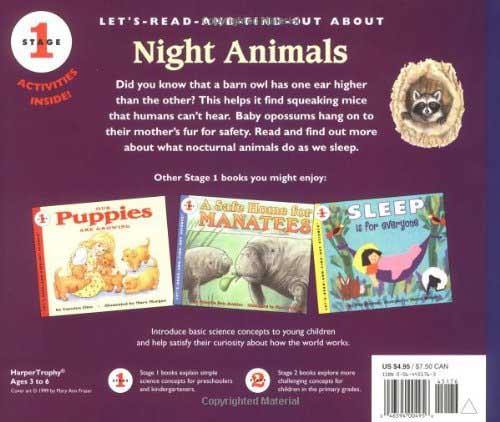 Did you know that a barn owl has one ear higher than the other? This helps it find squeaking mice that humans can't hear. Baby opossum hang on to their mother's fur for safety. Read and find out more about what nocturnal animals do as we sleep. This nonfiction picture book is an excellent choice to share during homeschooling, in particular for children ages 4 to 6. It’s a fun way to learn to read and as a supplement for activity books for children.