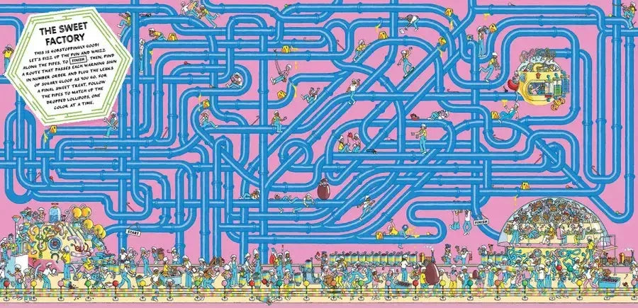 A-maze-ing! Follow Waldo on a journey through impossibly intricate mazes—with enough twists and turns to make you giddy.