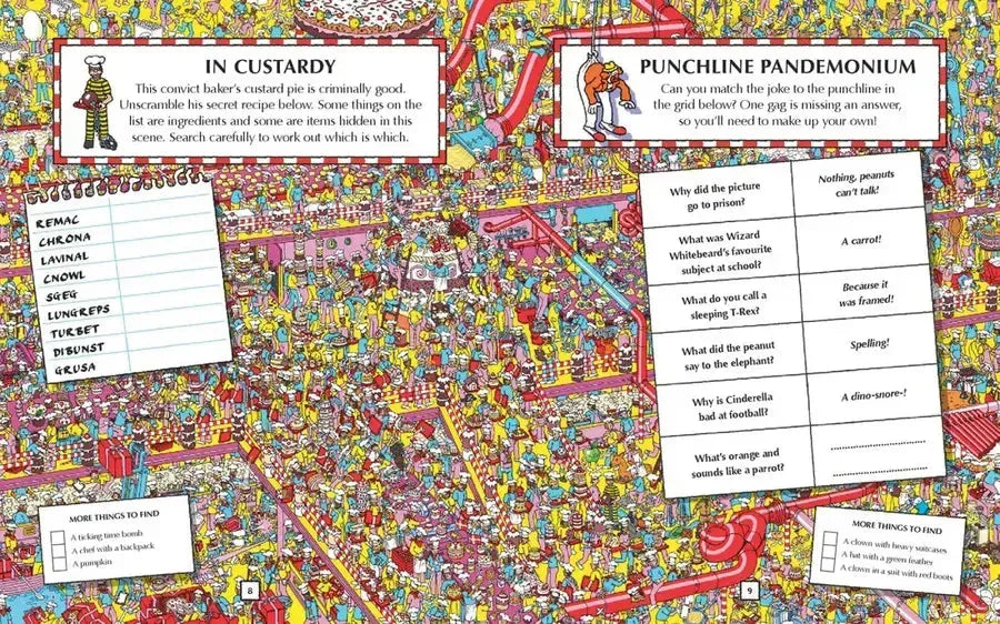 Whether on the road or just hanging out, keep boredom at bay with a handy collection of Waldo adventures featuring puzzles, searches, mazes, games, and more—including complimentary game cards and a poster. Divided into five sections, each for a different character—Waldo, Wenda, Woof, Odlaw, and Wizard Whitebeard—this compact flexi-back volume can easily go anywhere you do, with a handy elasticized closure for wrapping things up when your day’s adventures are done.