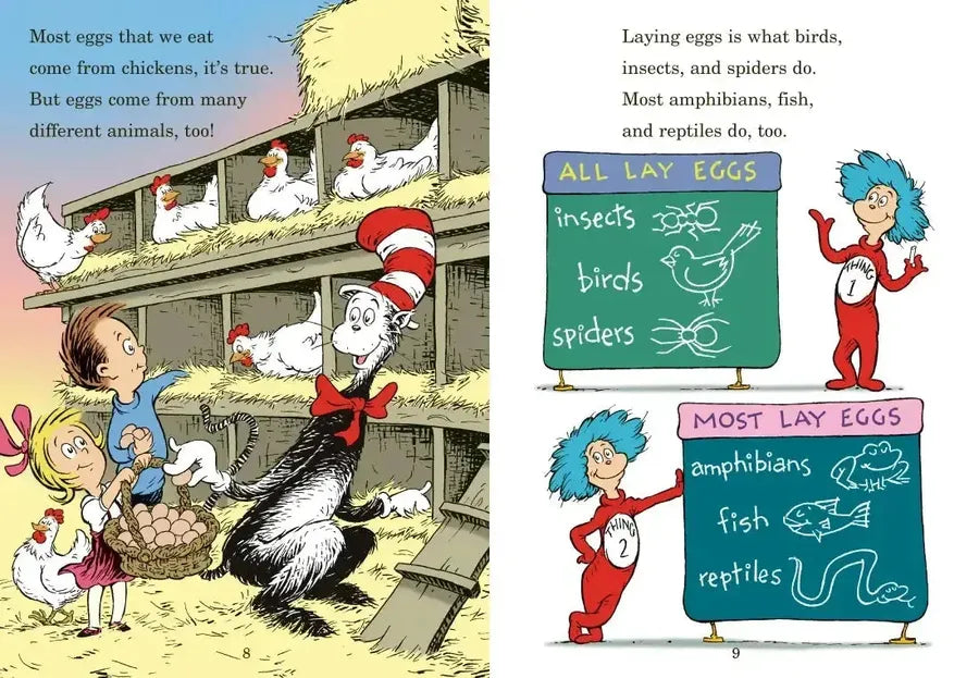 Laugh and learn with fun facts about eggs and the different kinds of animals that lay them—all told in Dr. Seuss’s beloved rhyming style and starring The Cat in the Hat!