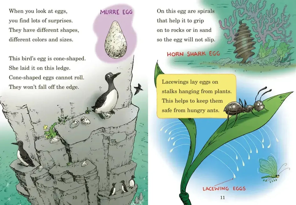 The Cat in the Hat’s Learning Library series combines beloved characters, engaging rhymes, and Seussian illustrations to introduce children to non-fiction topics from the real world! Crack open the science of eggs and discover: