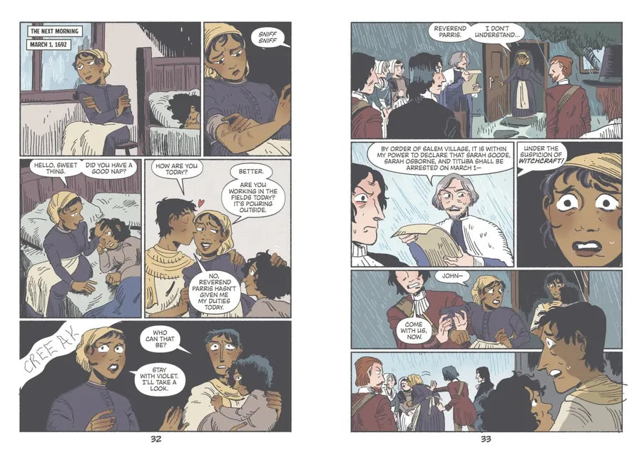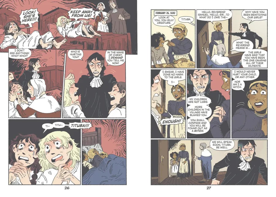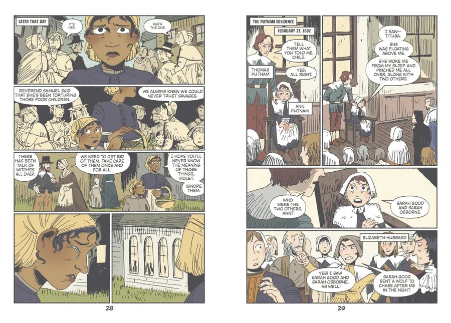 Follow the terrifying events of the 1692 Salem witch trials from the perspective of Tituba, an enslaved woman who was accused of bewitching two girls, Elizabeth Parris and Abigail Williams, during this harrowing, historic period. A story of speculation, mass hysteria, and survival, this graphic novel invites readers to immerse themselves into this haunting moment in American history—brought to life by gripping narrative and vivid full-color illustrations that jump off the page.