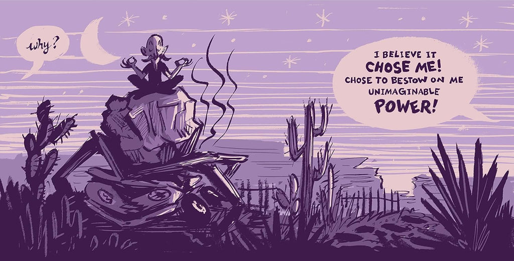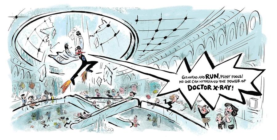 A sweet and appealing tale for anyone familiar with the universal tendency of young children to always ask WHY? When supervillain Doctor X-Ray swoops in threatening to vanquish an innocent crowd, the only one brave enough not to run away is a little girl, who asks him simply, "Why?" He is taken aback—but he answers. She keeps asking. And he keeps answering—until a surprising truth is uncovered, and the villain is thwarted.