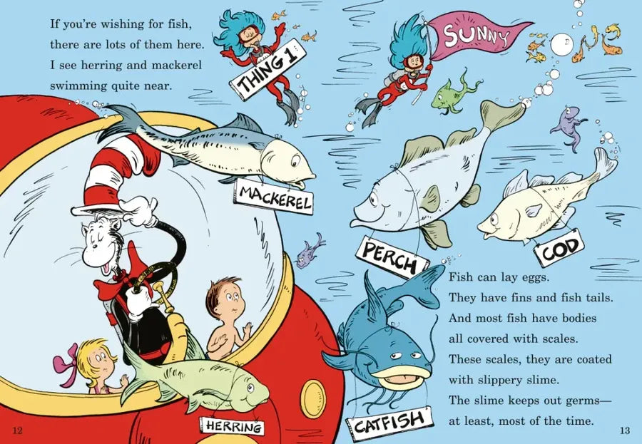 Laugh and learn with fun facts about narwals, dolphins, sharks, giant squid, manatees, and more—all told in Dr. Seuss’s beloved rhyming style and starring The Cat in the Hat!