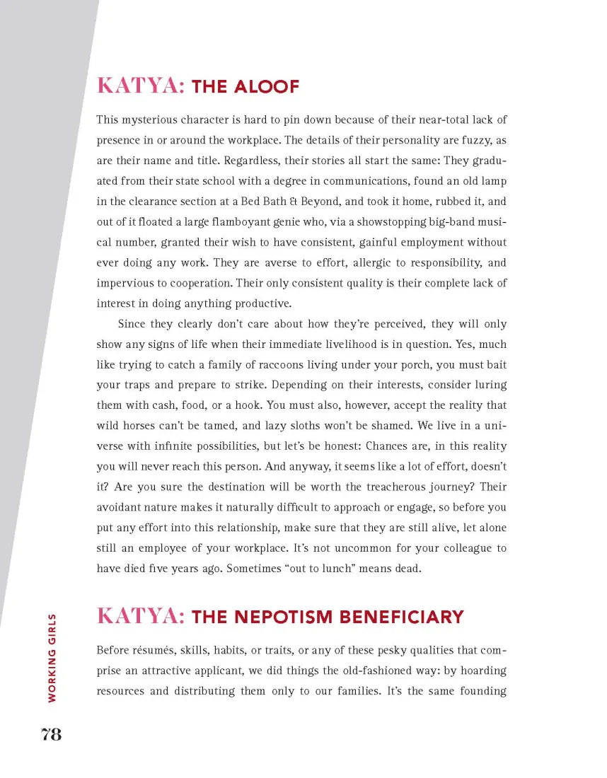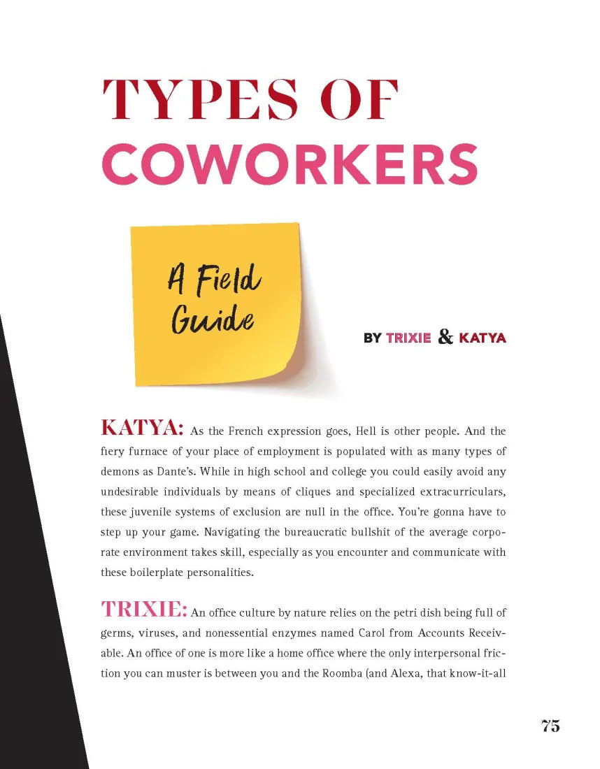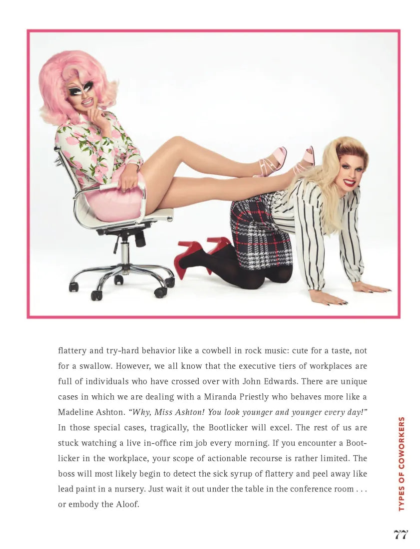 In Working Girls, Trixie and Katya dole out both savvy and satirical advice for every stage of working life, from choosing a career path to sailing into a blissful retirement, in step-by-step guides, quizzes, the world’s most bizarre aptitude test, and more. Searching for the perfect interview outfit? Agonizing over how to get that raise? Suspicious that your colleague doesn’t really hope their email “finds you well”? Trixie and Katya have got you covered. They also share personal stories from their own remarkable careers and their philosophies on everything from mastering office lingo to getting fired with dignity, all alongside hilarious, gorgeous photos.