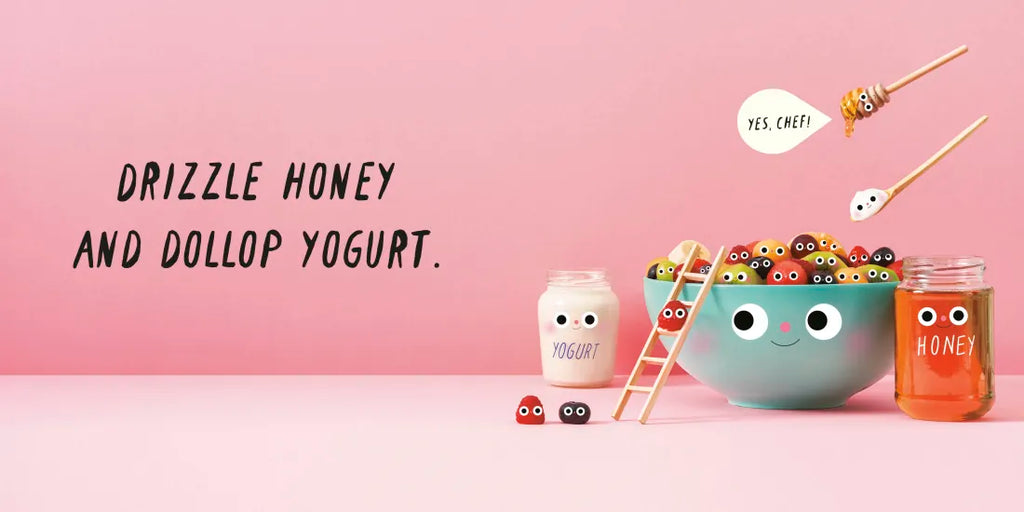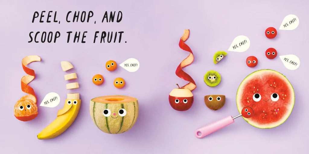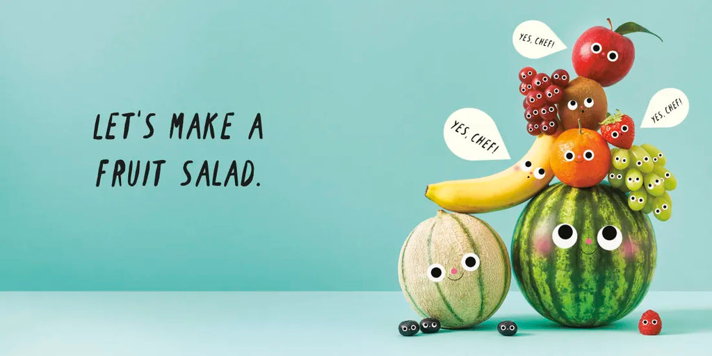 This charming board book immerses kids in making a delicious fruit salad through simple text and adorable anthropomorphized food art.