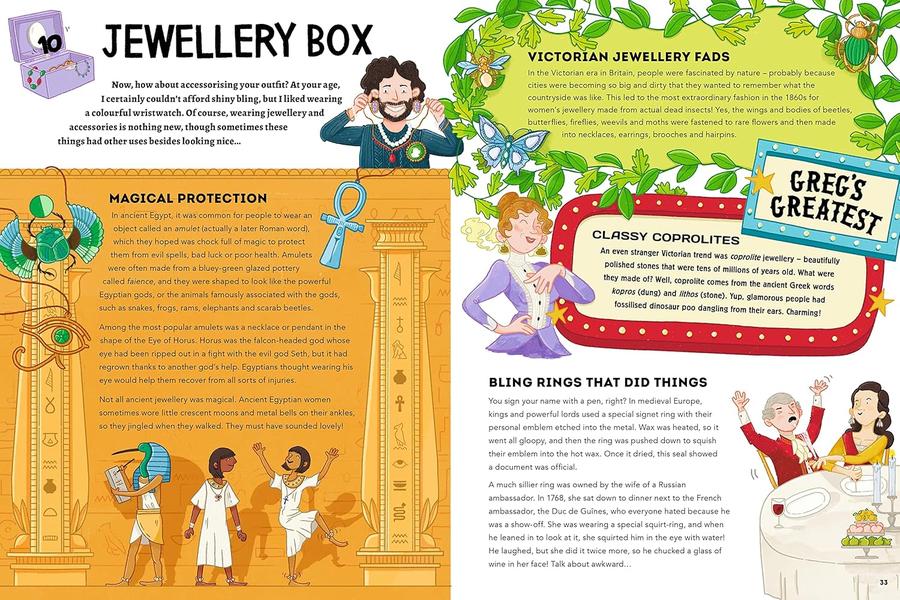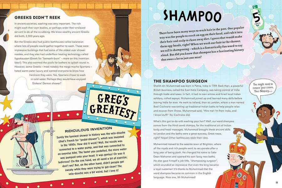 Thought history was only in museums? Think again! Join Greg Jenner as he takes you on a trip through the amazing history hidden in the things you use every day. Did you know that the first TV was made out of biscuit tins and knitting needles? Or that the humble paperclip helped lead an anti-war movement? Or that a few hundred years ago it was fashionable to style your hair with cat poo?! Find out the delightful, daft and downright deadly history of your everyday life that your teachers won’t tell you about. Bursting with humorous illustrations and entertaining true stories, this is history – but not as you know it!