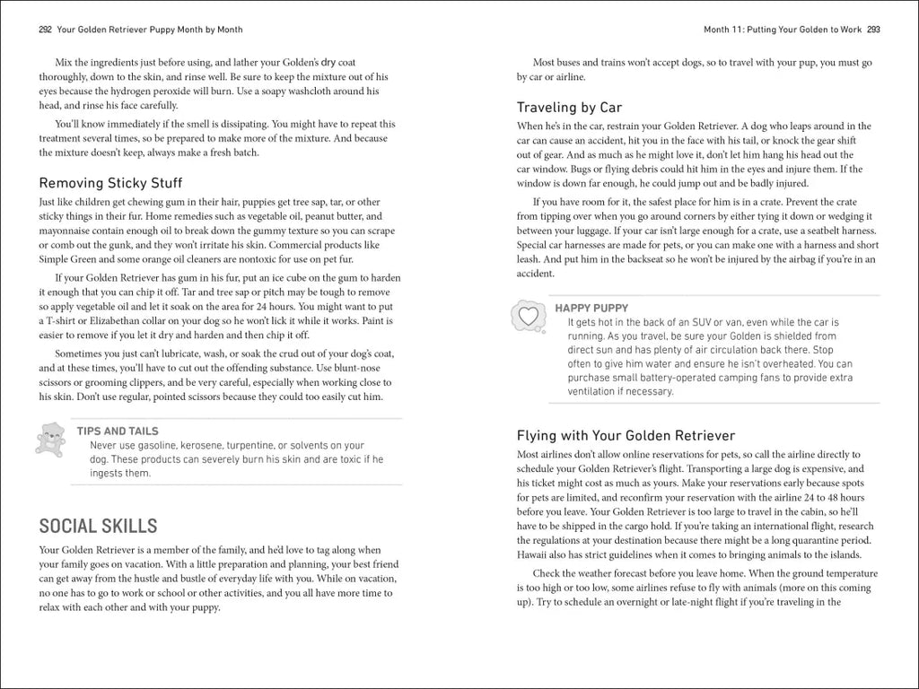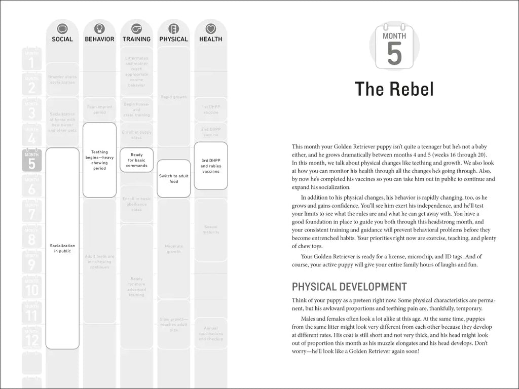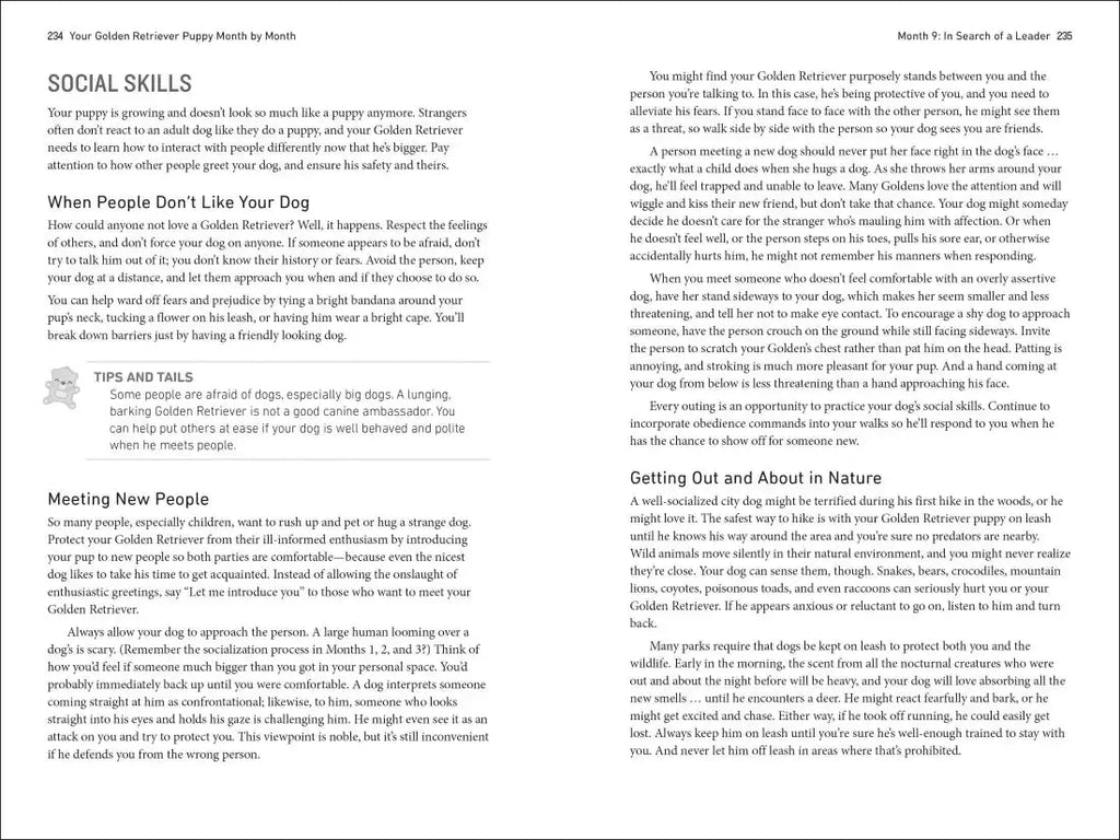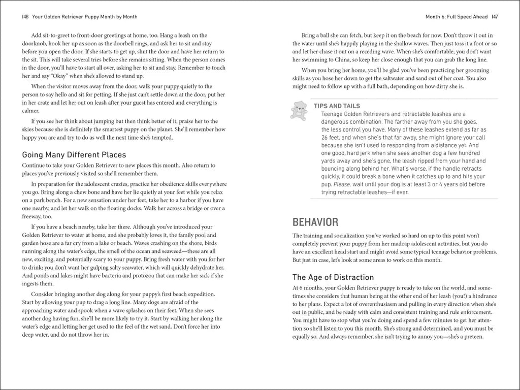 Your Golden Retriever Puppy Month by Month provides new pet owners with everything you need to know and do at each stage of development to make sure your playful, energetic puppy grows into a happy, healthy, and well-adjusted companion. A veterinarian, a trainer, and a breeder team up to cover all the questions new owners tend to have, and many they don’t think to ask, including: