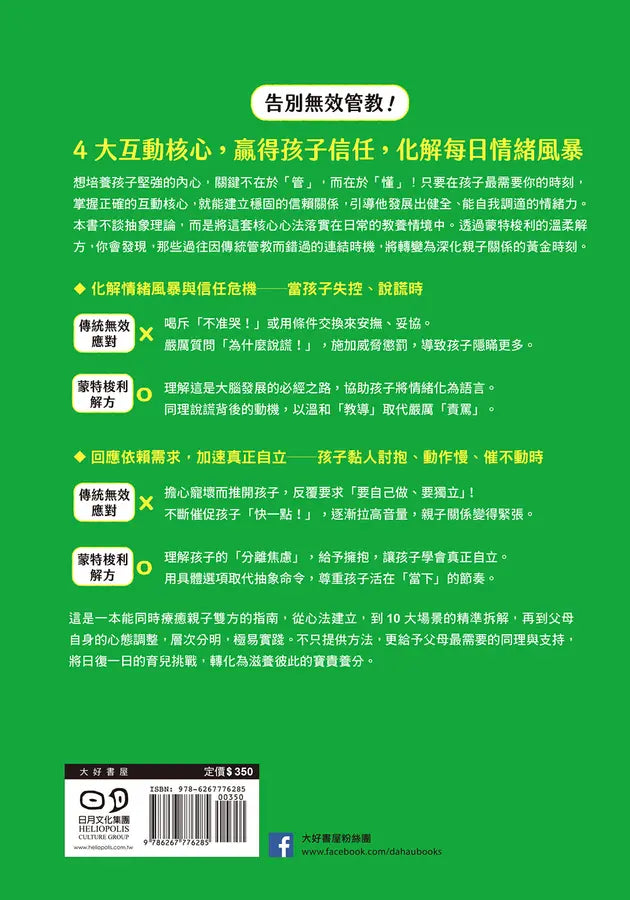 精準拆解10個最令父母頭痛的黃金時機,從哭鬧、說謊到手足爭執,給予具體、可實踐的步驟。