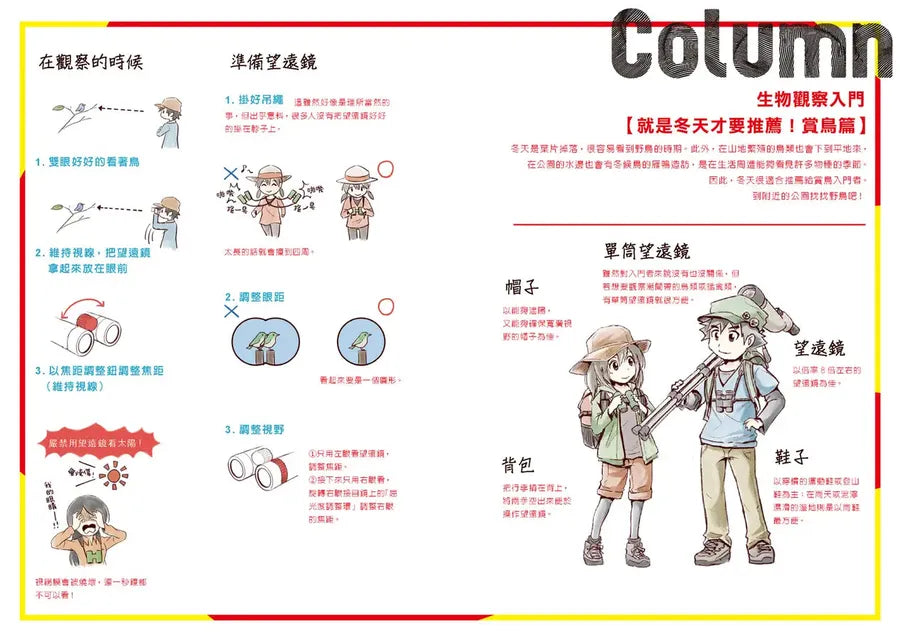 另外從專欄也可以認識動物的戀愛情狀、杜鵑托卵以及前往山上、海邊觀察生物與賞鳥的注意事項等等,從輕鬆漫畫學習動物知識,兼具趣味與知識的優點,即使是小朋友也可以樂在其中喔!