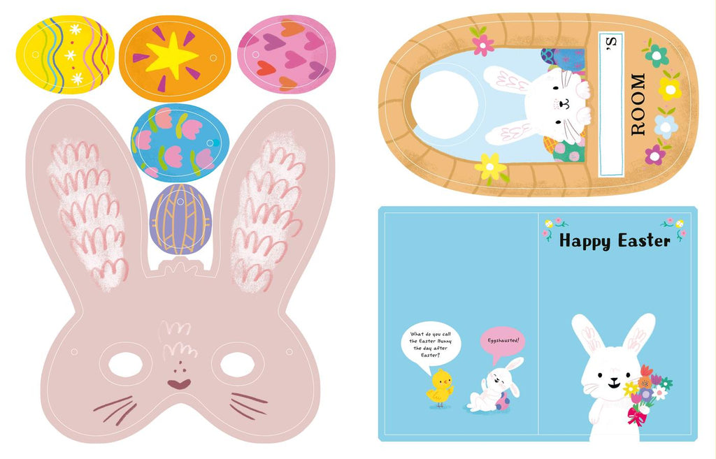 Celebrate Easter and the spring season with this fun activity book! Readers will love to complete the delightful puzzles, fun coloring scenes, and Easter crafts that most children can do themselves and with common household items. This engaging activity book includes an adorable press-out bunny mask, a door hanger, Easter-themed stencils, and more than 100 colorful stickers for young artists to decorate their creations.