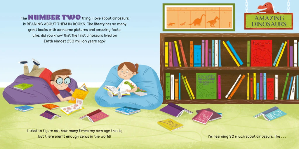 10 Things I Love About Dinosaurs is a lively celebration of the most wonderful things about dinosaurs, from learning facts and figures and knowing the names of the dinosaurs, to a fossil hunt and a trip to the dinosaur museum! A fun counting element makes this the perfect book for reading aloud.