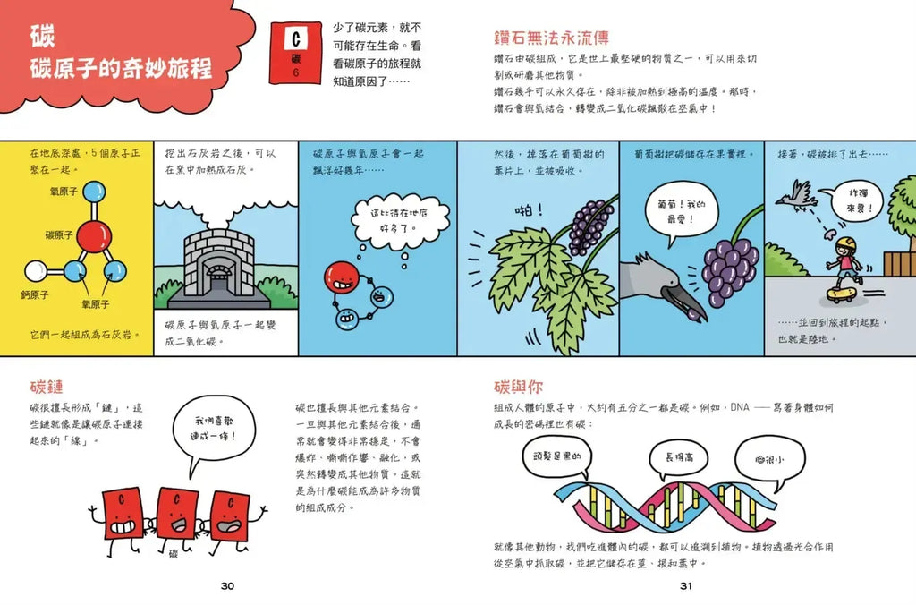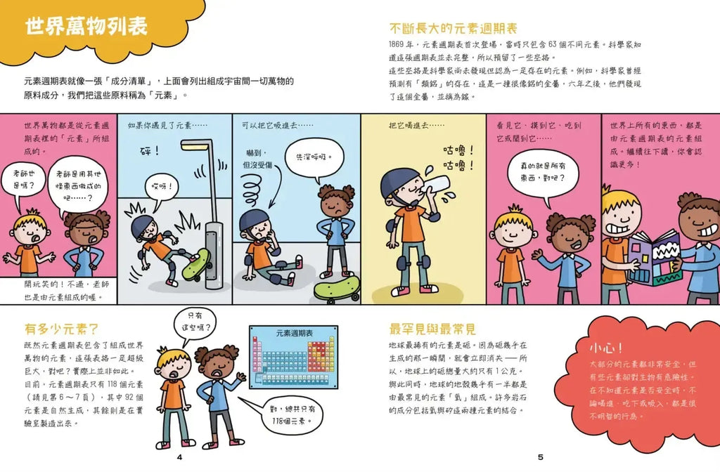 絕對不無聊,一點也不枯燥!透過趣味漫畫以及簡單圖文解說,讓孩子不懼怕元素表,打下科學基礎!