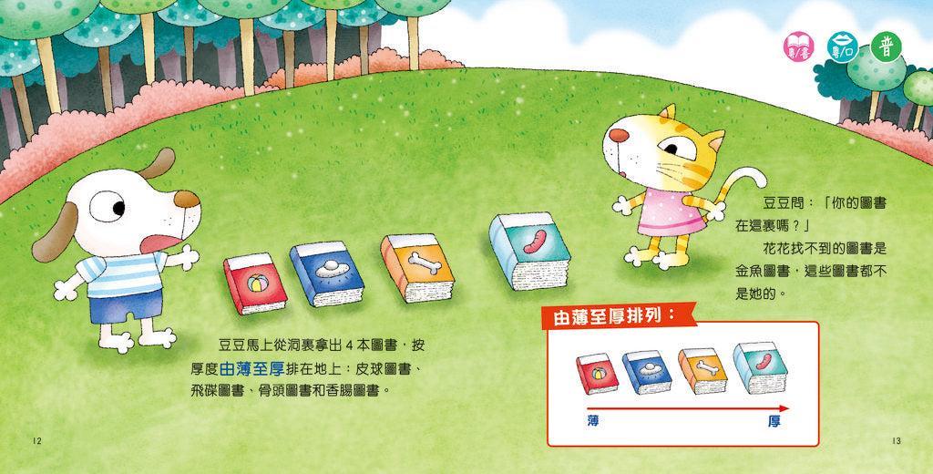 小貓花花的房間太亂了,令她總是找不到自己的物品,還誤會了小狗豆豆拿了她的東西!快來跟花花一起學習排序,趕快收拾房間!