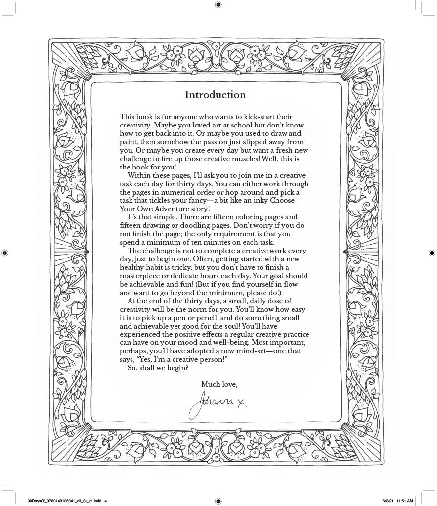 In 30 Days of Creativity, colorist Johanna Basford takes you on a journey of imaginative prompts and inspiring ideas that will kick-start your creativity. A mix of whimsical doodle pages, expert artistic advice, and simple step-by-step drawing guides, the book celebrates the things that bring us comfort and joy, from scrumptious ice cream cones to flourishing potted plants. And of course, there's plenty of pages to color when you find yourself in flow and want to remain in the creative bubble a little longer. For those of us who struggle to make time for self-care, the prompt to pick up your book each day will soon become a creative habit that allows a little calm into your life.