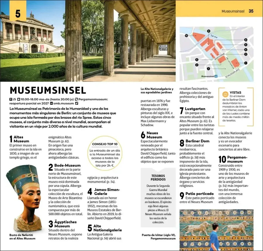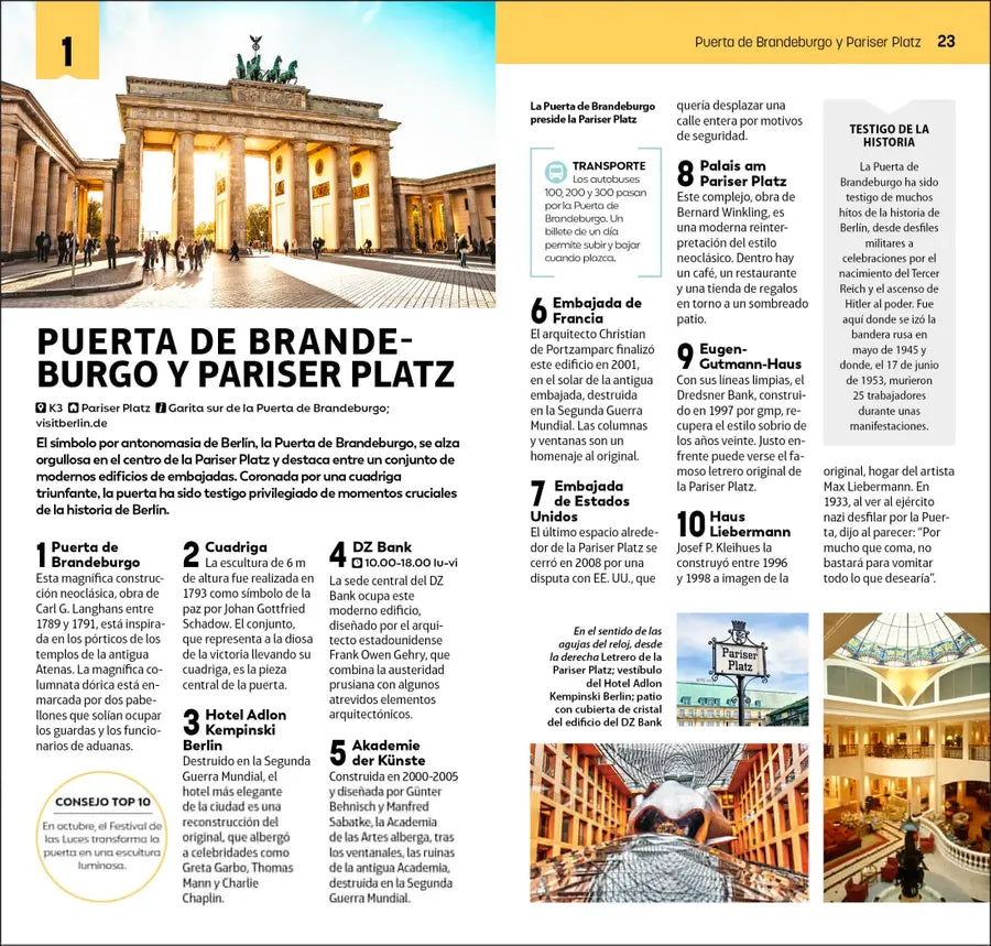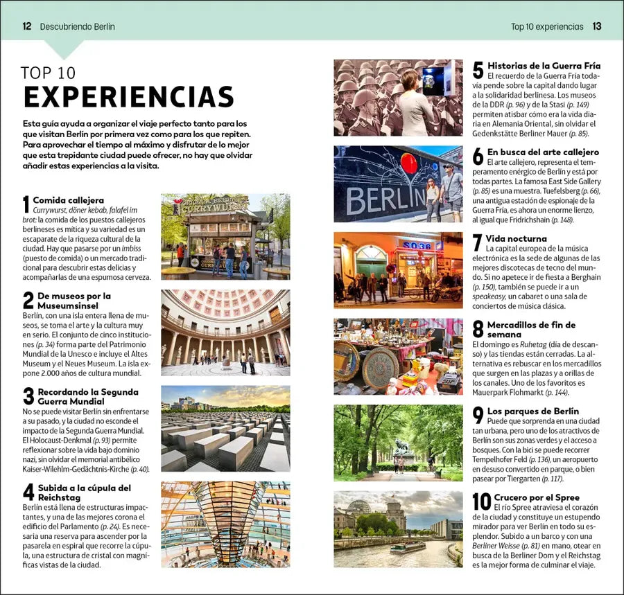 La Guía DK Travel Top 10 Berlín te muestra lo mejor en prácticos listados: los diez monumentos más emblemáticos, los diez bares más animados o las diez visitas más curiosas. Organizada por zonas, la guía señala los lugares más destacados de cada una de ellas.