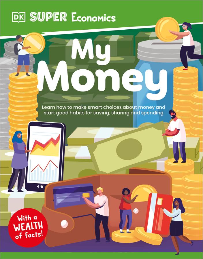 Topics covered in DK Super Economics My Money include making good choices about money, including earning, spending and saving.