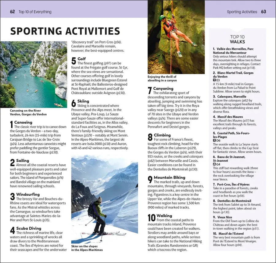 - Top 10 lists of Provence and the Côte d’Azur's must-sees and must-dos, including admiring Roman architecture in Arles, sunning yourself in St-Tropez and hiking in the Gorges du Verdon