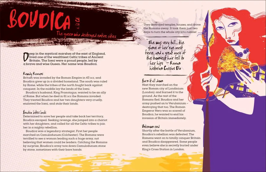 Think the past was only full of dull, uptight royals? Then strap right in for stories of willful women who defied expectations, changed the course of history, and sometimes were just downright awesome! From fearless fighters who rallied spectacular armies to no-nonsense negotiators who fought for independence, each woman in this book turned norms on their head and smashed gender stereotypes.