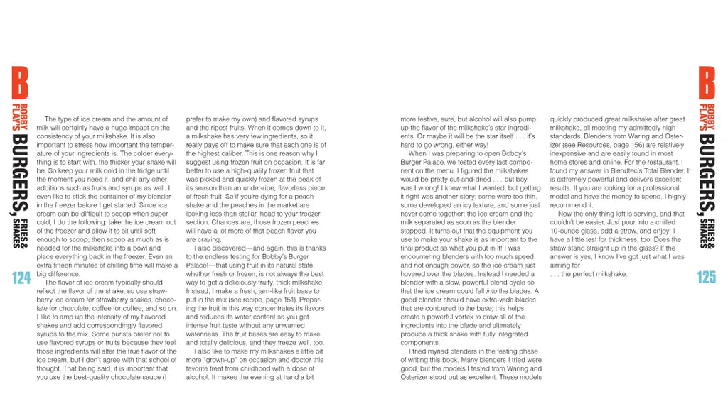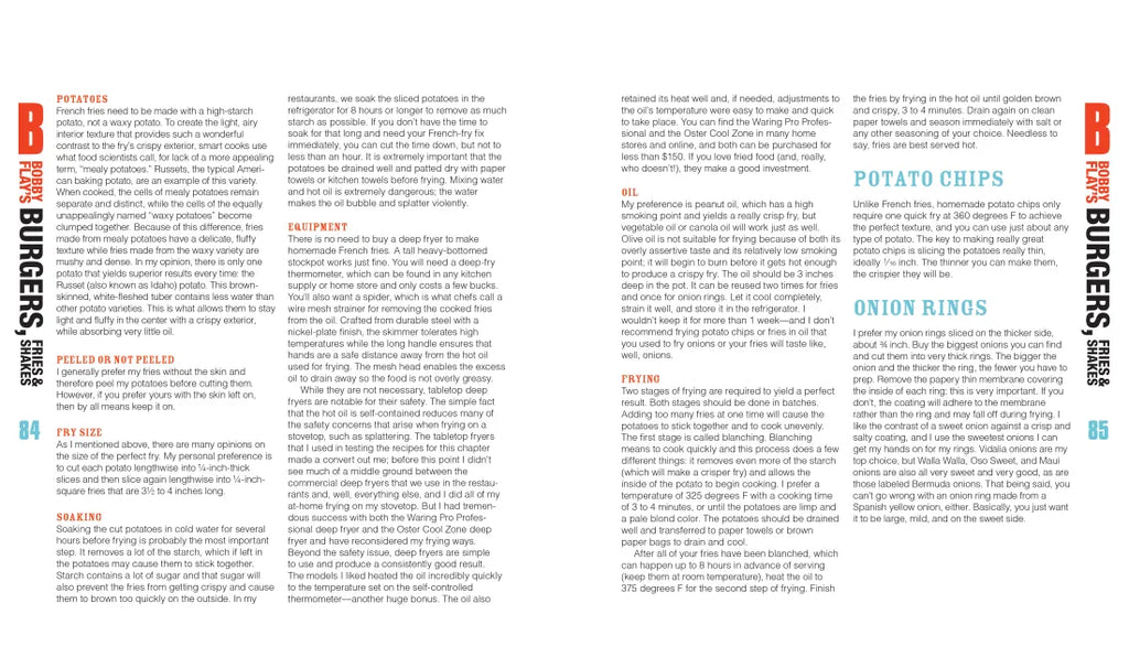 After you’ve mastered the burger, discover Bobby’s secrets to cooking up the best French fries–whether they’re fried, grilled, or oven roasted, or made from spuds, sweet potatoes, or even plantains–as well as homemade potato chips and onions rings. Wash it all down with a creamy shake, from Fresh Mint—Chocolate Speckled Milkshake to Blackberry Cheesecake Milkshake (or a spiked adult variation).