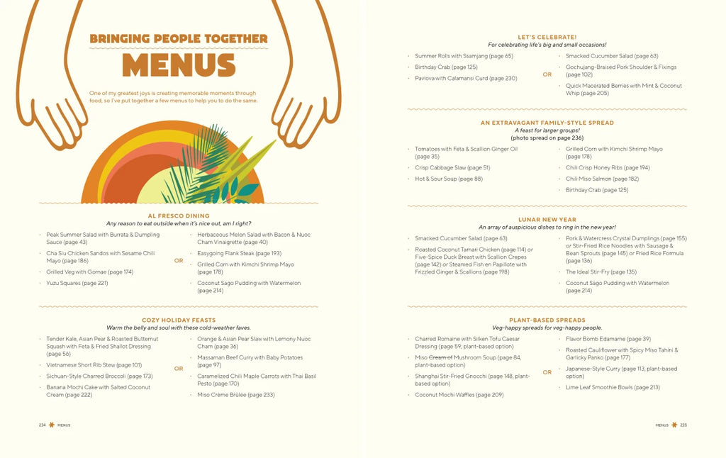 • Menus for All Occasions: Serve friends and family multi-course menus like a cozy holiday feast, a Lunar New Year dinner, or a sumptuous plant-based spread.