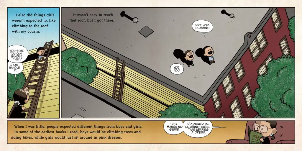 Before Supreme Court Justice Ruth Bader Ginsburg was the judge, she was a young Jewish girl growing up in Brooklyn, inspired by books, past female trailblazers, and her mother to make the world a better, more just place to be. So even when people turned her away—for being a girl and for being Jewish—she never stopped fighting for equal treatment for everyone by pushing back against unjust laws and the beliefs around them.