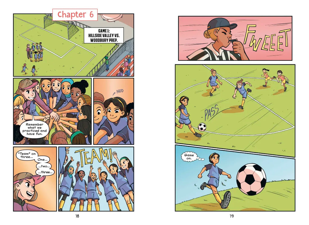It's back to school for the Hillside Valley kids! Sol's trying out for the middle school soccer team but will a crush on the team captain distract her from her goals? Find out in this new Hillside Valley graphic novel—filled with friendship, first crushes, and some impressive soccer skills!