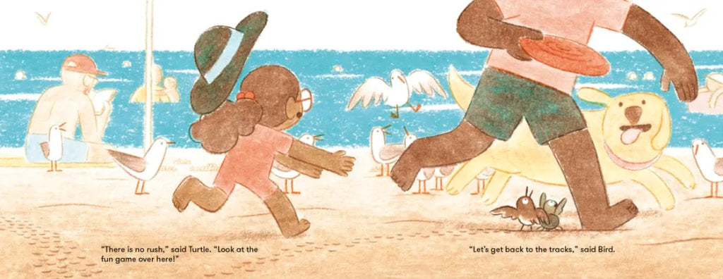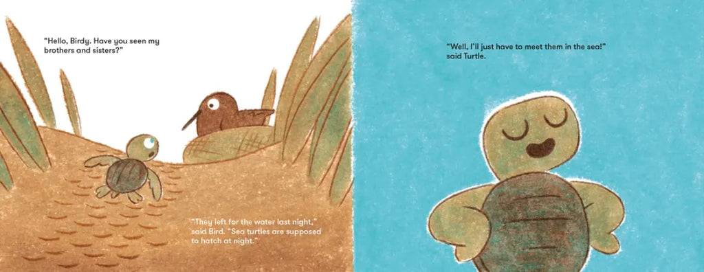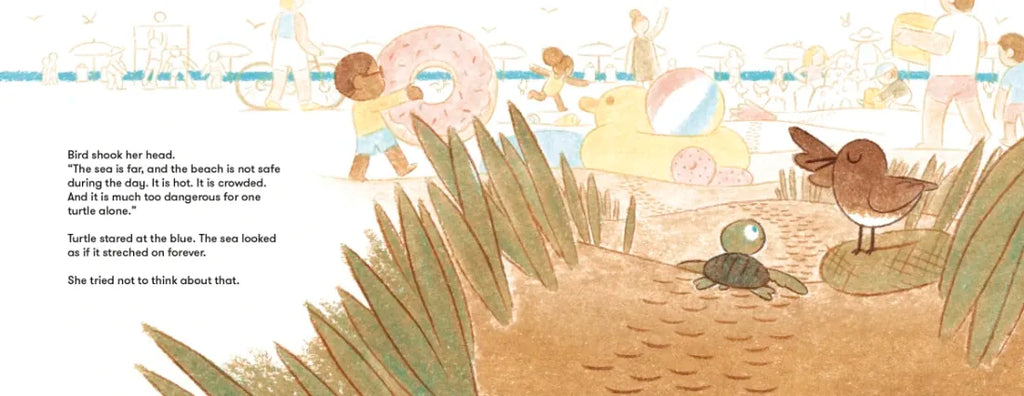 Lucky for Turtle, she's not alone. Bird will do her best to keep Turtle safe along the way, but it's not the dangers of the beach that worry Turtle. The closer Turtle gets to the sea, the bigger it looks, and the more she wonders if she can ever find her family in something so big.