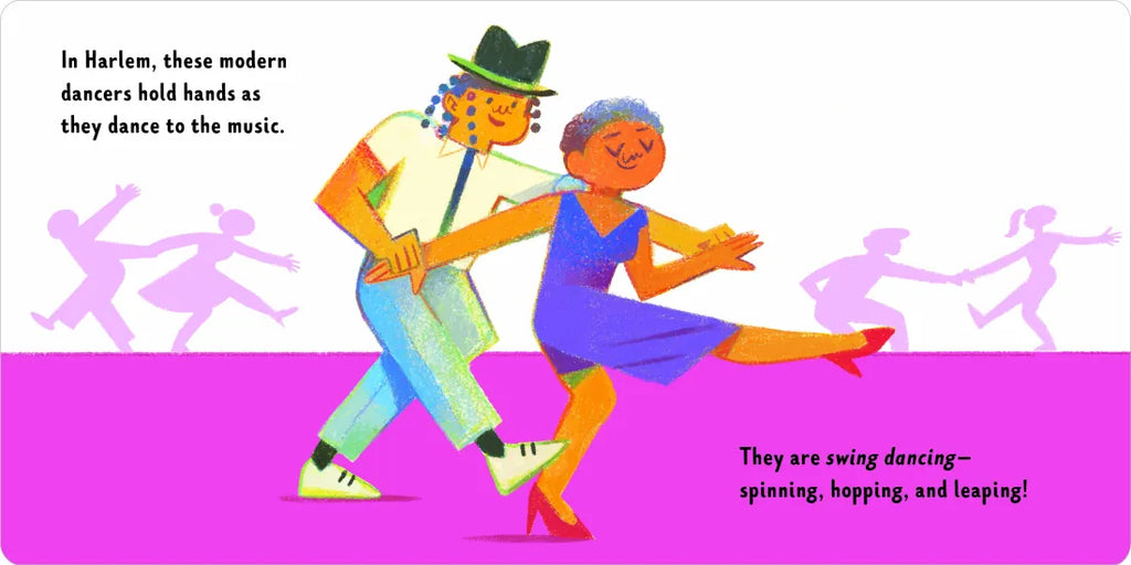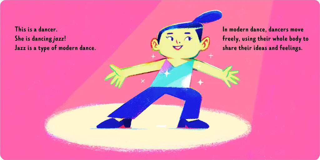 Can anyone be a modern dancer? Yes! From tap dance to swing, this board book celebrates the expressive, energetic world of jazz and modern dance. Young readers are introduced to a variety of styles from around the world and encouraged to dance freely, however and wherever they choose. Whether twirling alone or grooving with friends, kids will be inspired to move their bodies with joy, confidence, and creativity.