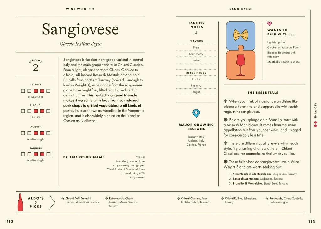 Whether you’re scanning a restaurant's giant wine list or picking up a bottle for a dinner party, Perfect Pairings teaches you how to choose the right wine for the moment. Aldo distills his vast database of expert knowledge into a fun and useful guide that you can turn to at any time. Most wine pairing books simply list which wines to pair with which foods, but Wine Simple: Perfect Pairings goes a step further, teaching you how to think like a sommelier and create the pairings yourself. You’ll learn basic information about the wines you’ll be pairing, followed by ways to think about the elements of what you eat; together, these tools form an ingenious wine-pairing method created by Aldo. Plenty of visual guides, cheat-sheets, and hand-holding will guide you along the way.