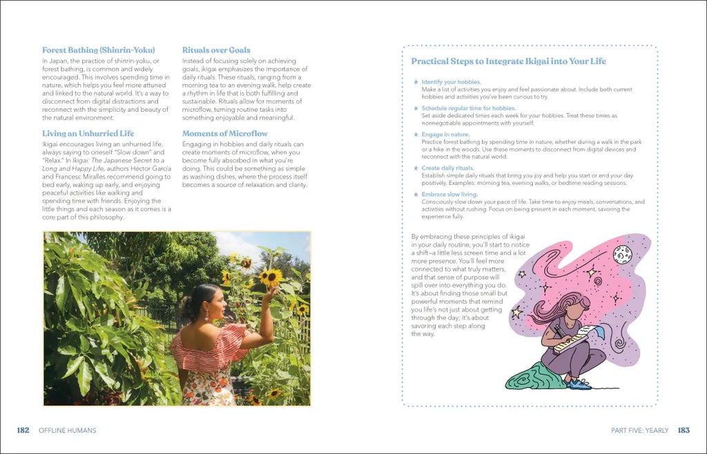 In Offline Humans, writer and creator Natalie Alzate invites you to stop the endless doom scroll and find joy in the physical world, where you can reconnect with what truly matters. Her strategic, day-by-day approach guides you to gradually reduce time spent online through journaling prompts, thought-provoking exercises, and creative suggestions for offline activities.