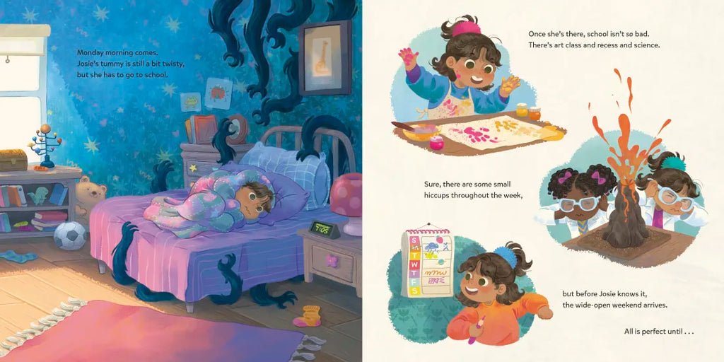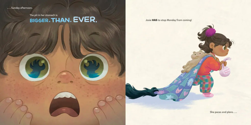 Josie loves the weekend. She gets to do all her favorite things with mom and dad like movie night and eating the fluffiest pancakes ever. But then it starts. At first, it’s just a tickle in her throat. A wisp of a shadow behind her back . . . MONDAY is coming. Josie has a case of the Sunday scaries, maybe her parents too.