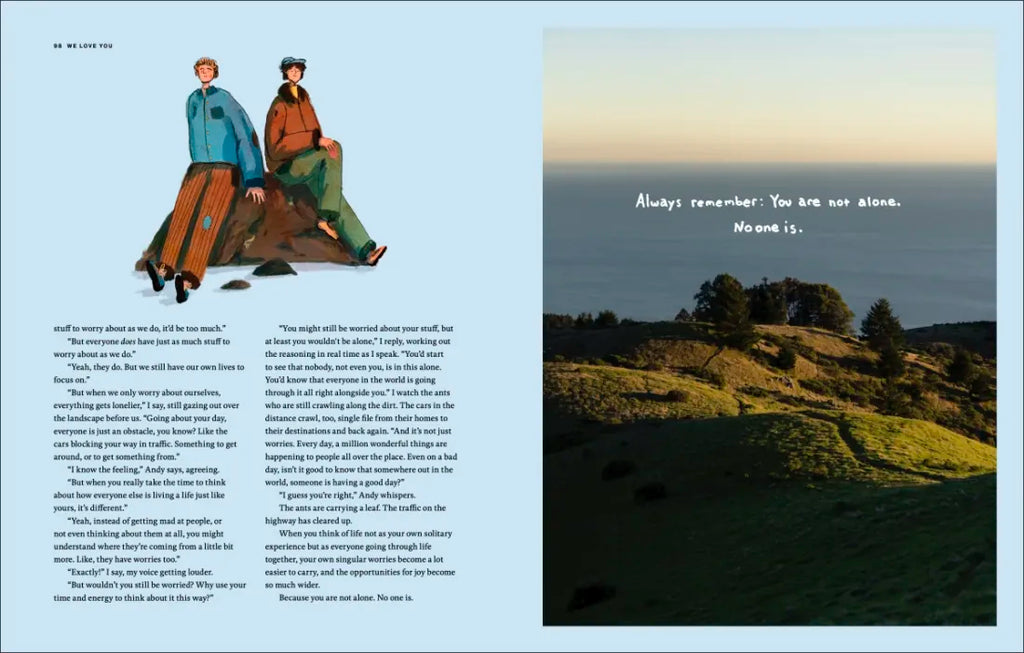 Sometimes the world feels overwhelming and scary and nothing seems to make sense, but when we look a little closer, and think a little bigger, we can find the meaning and joy in our everyday lives. By exploring the natural world through stunning photography and playful illustrations, We Love You asks all the big questions. Join Andy and Thomas as they show you that hope is not just some distant dream, and that maybe, there’s nothing to be afraid of. With a little hope, kindness, and understanding, all of our lives on this rock floating through space can be so much better.