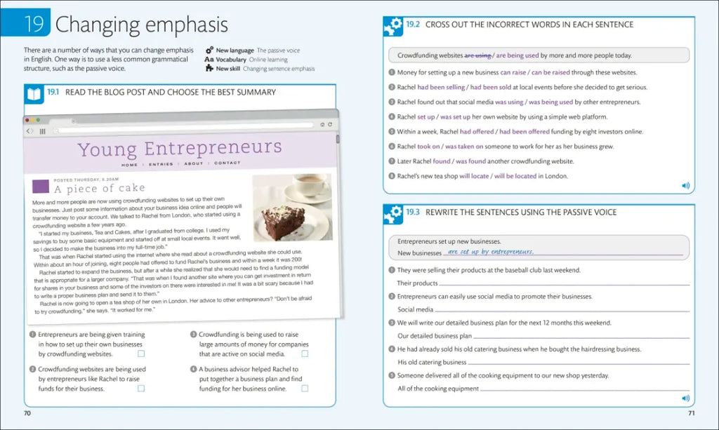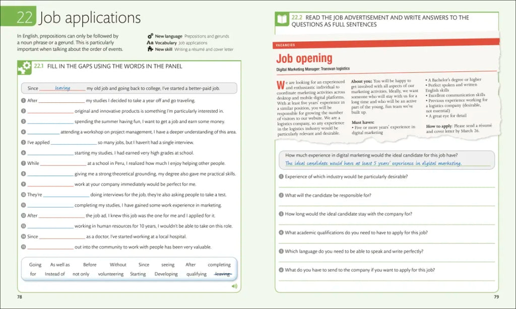 Grab your pen and work your way through hundreds of bite-sized, attractively presented exercises as you cover each topic. Activities cover listening, speaking, reading and writing skills, and include filling in the blanks, true or false decision-making, matching the pairs and word searches. Extensive audio materials support all teaching, with clips recorded by native English speakers to teach the perfect pronunciation.
