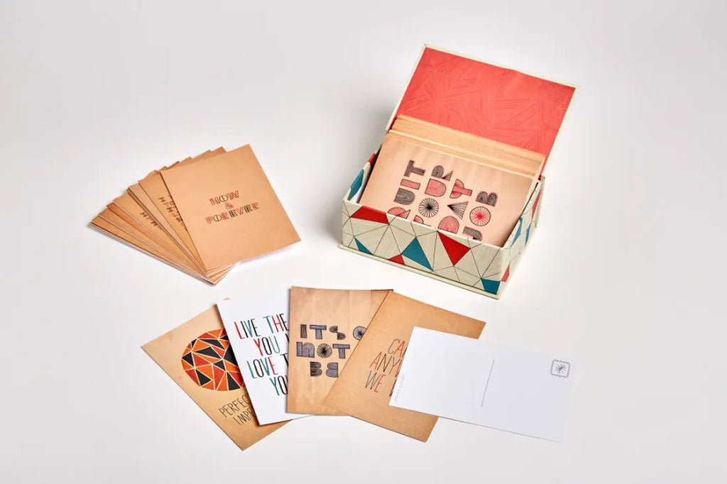 For design enthusiasts and those who appreciate a well-phrased aphorism, Brooklyn-based artist Scotty Albrecht matches his quirky affirmations with hand-drawn typography in this original collection of 100 postcards. In the era of email and standard typefaces, the use of postcards and hand-drawn typography represents a revival in personal touches. Featuring 25 witty and inspirational hand-written aphorisms (reproduced 4 times), and housed in a kraft-paper box designed by the artist, this 100-card postcard set is a wonderful gift for craft and design enthusiasts.