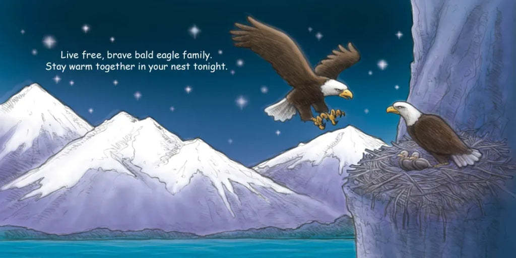Good Night America explores the Everglades, Niagara Falls, the Grand Canyon, redwood forests, Statue of Liberty, Washington DC, Mississippi River, Golden Gate Bridge, farms, bison, bears, sea lions, cowboys, tropical islands, and more. Young children are invited to explore the wonders of America's most iconic landmarks and attractions before bedtime with this beautifully illustrated board book.