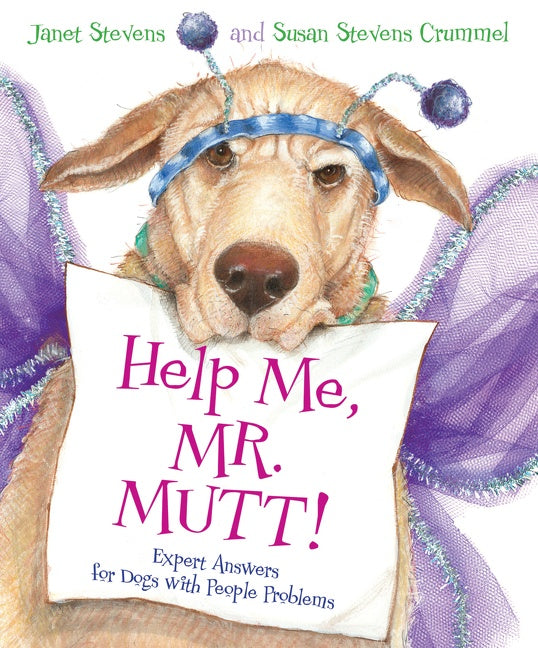 Responding to disgruntled dogs nationwide, Mr. Mutt, Canine Counselor, has solutions to the most sticky dilemmas. But Mr. Mutt has his own problem to solve: the cat (aka The Queen), who has her own idea of who’s in charge. Now Mr. Mutt is the one who needs help--quick!          Through letters and newspaper clippings--and with plenty of their trademark humor--Janet Stevens and Susan Stevens Crummel give voice to despairing dogs everywhere.