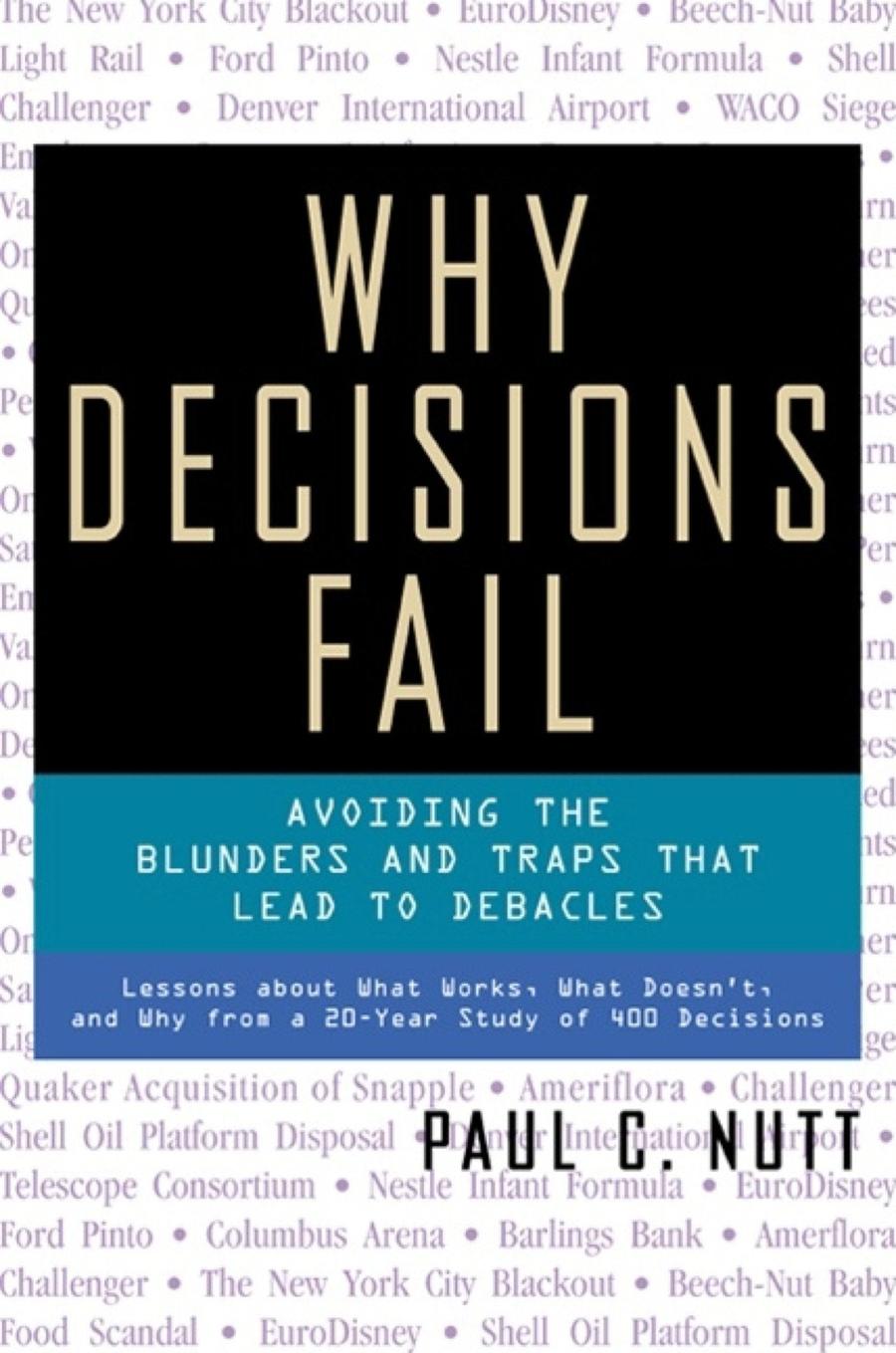 Based on the his analysis of 400 strategic decisions made by top managers in areas such as products and services, pricing and markets, personnel policy, technology acquisition, and strategic reorganization, Nutt estimates that two-thirds of all decisions are based on failure-prone or questionable tactics. He uses the fifteen monumental decision-making disasters to illustrate the potential consequences of these common tactical errors and traps and then details successful alternative decision-making approaches.