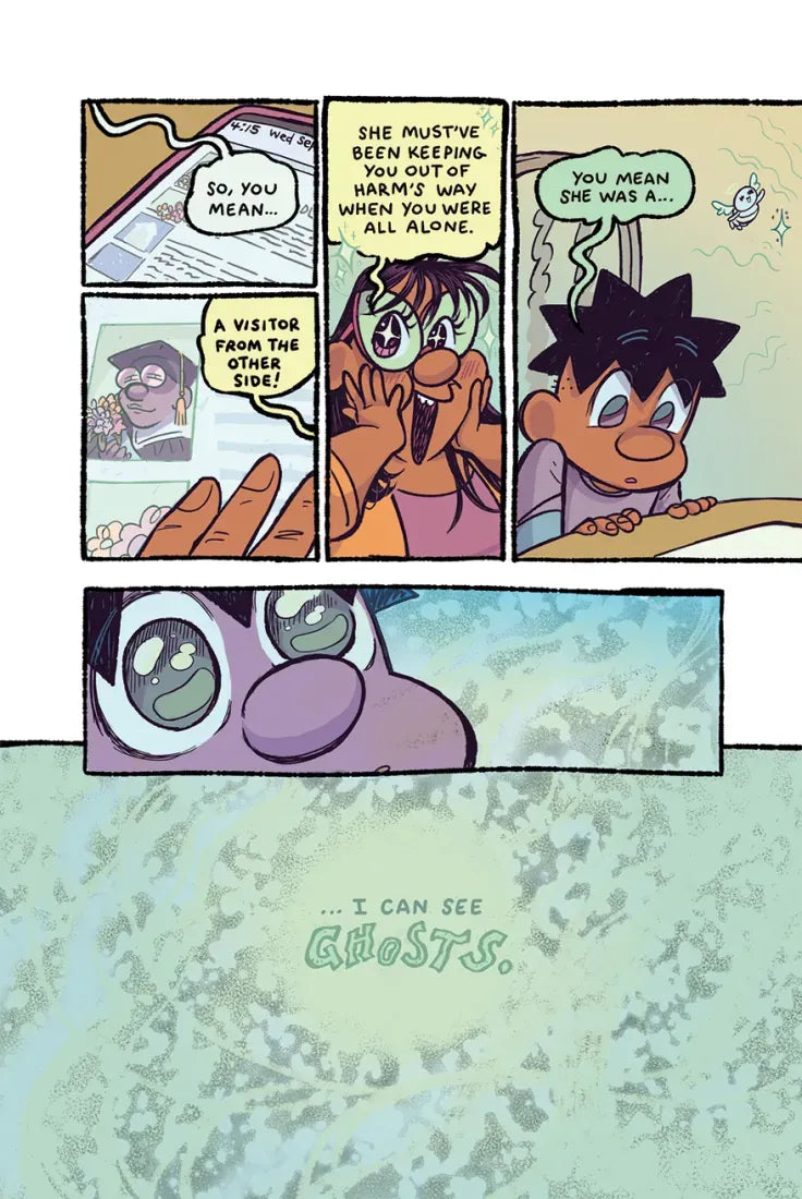 Gabriel Navarro can see ghosts. At least, that’s what he’s always believed, but after his beloved tía dies, he can’t seem to reach her. Feeling alone and lost, he stumbles into a mysterious encounter on a school field trip and suddenly finds himself the new best friend and business partner of his eccentric classmate Clementine.