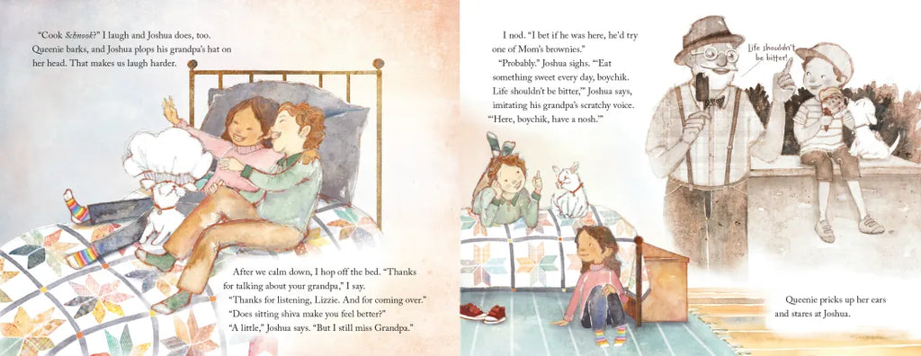 Lizzie’s never experienced shiva before. When she and her mom arrive at Joshua’s house, Lizzie is determined to cheer up her friend who is mourning the loss of his grandfather.