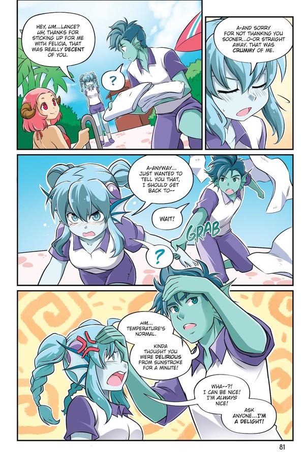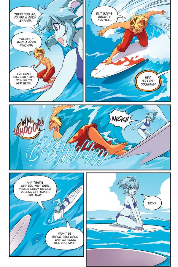 Meet Coral, a sweet-natured girl who lives with her parents, kid sister Maki, and pet sea otter in the seaside town of Reef Beach. She's no different than any other teenager--except like all inhabitants of New Lemuria, she's not quite human. Coral is a sea sprite, and when not at school, or helping out in her mom's dress shop, or hanging out with friends, she's out catching waves on her beloved surfboard. But Coral's life is about to turn upside down once dreamy fire ifrit, Nick Inferno, comes to town. How can she not crush on this boy who is literally burning hot?!