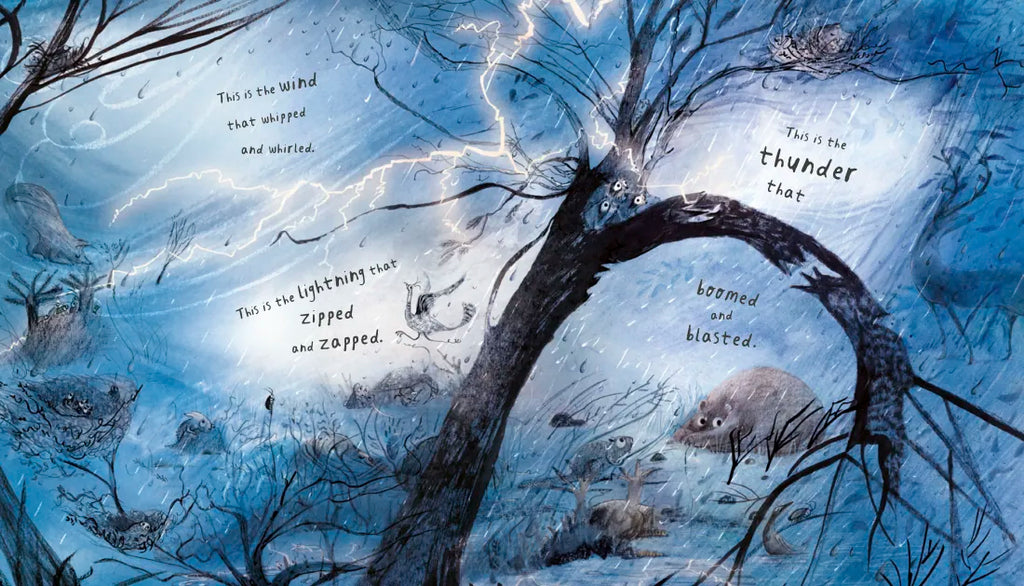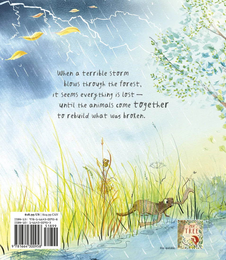 One day, a terrible storm rips through the forest, destroying everything in its path. Nests have been flattened, trees are broken, and burrows are flooded. The animals feel sad and discouraged— until, one by one, they take small steps to rebuild their home. An inspiring story of hope, community, and working together, inspired by the nursery rhyme "The House That Jack Built."